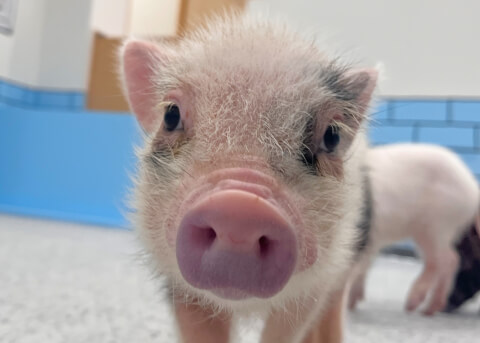 マイクロチップを装着し、日本獣医師会が管理するデータベースに登録。ブタさんが迷子になり保護されたときに身元確認が可能。