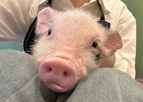 マイクロチップを装着し、日本獣医師会が管理するデータベースに登録。ブタさんが迷子になり保護されたときに身元確認が可能。