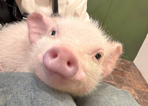マイクロチップを装着し、日本獣医師会が管理するデータベースに登録。ブタさんが迷子になり保護されたときに身元確認が可能。