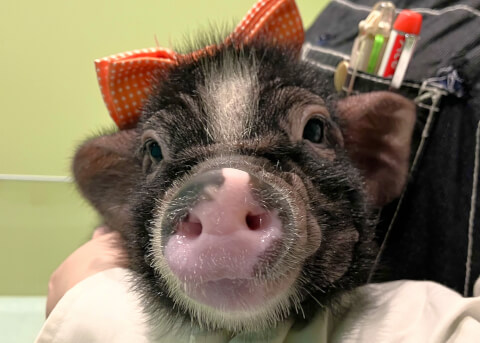 マイクロチップを装着し、日本獣医師会が管理するデータベースに登録。ブタさんが迷子になり保護されたときに身元確認が可能。