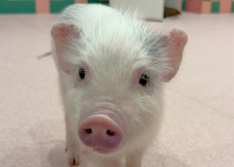 マイクロチップを装着し、日本獣医師会が管理するデータベースに登録。ブタさんが迷子になり保護されたときに身元確認が可能。