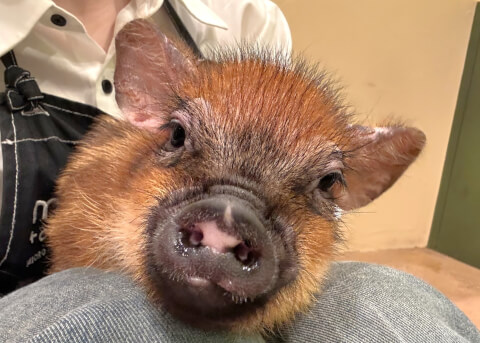 マイクロチップを装着し、日本獣医師会が管理するデータベースに登録。ブタさんが迷子になり保護されたときに身元確認が可能。
