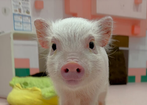 マイクロチップを装着し、日本獣医師会が管理するデータベースに登録。ブタさんが迷子になり保護されたときに身元確認が可能。